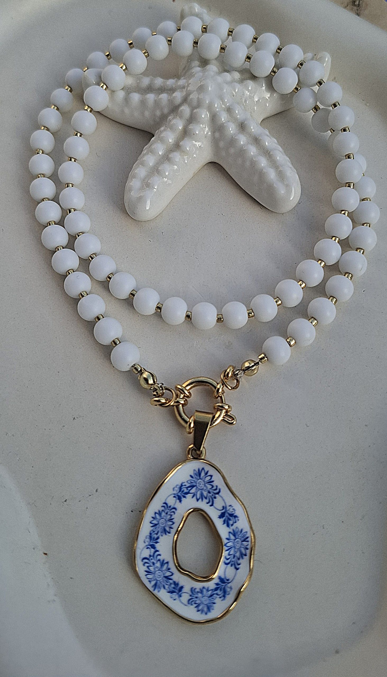 ogrlica – mat perle s privjeskom od čelika i emajla, dužina 50 cm, privjesak 3 x 2,5 cm