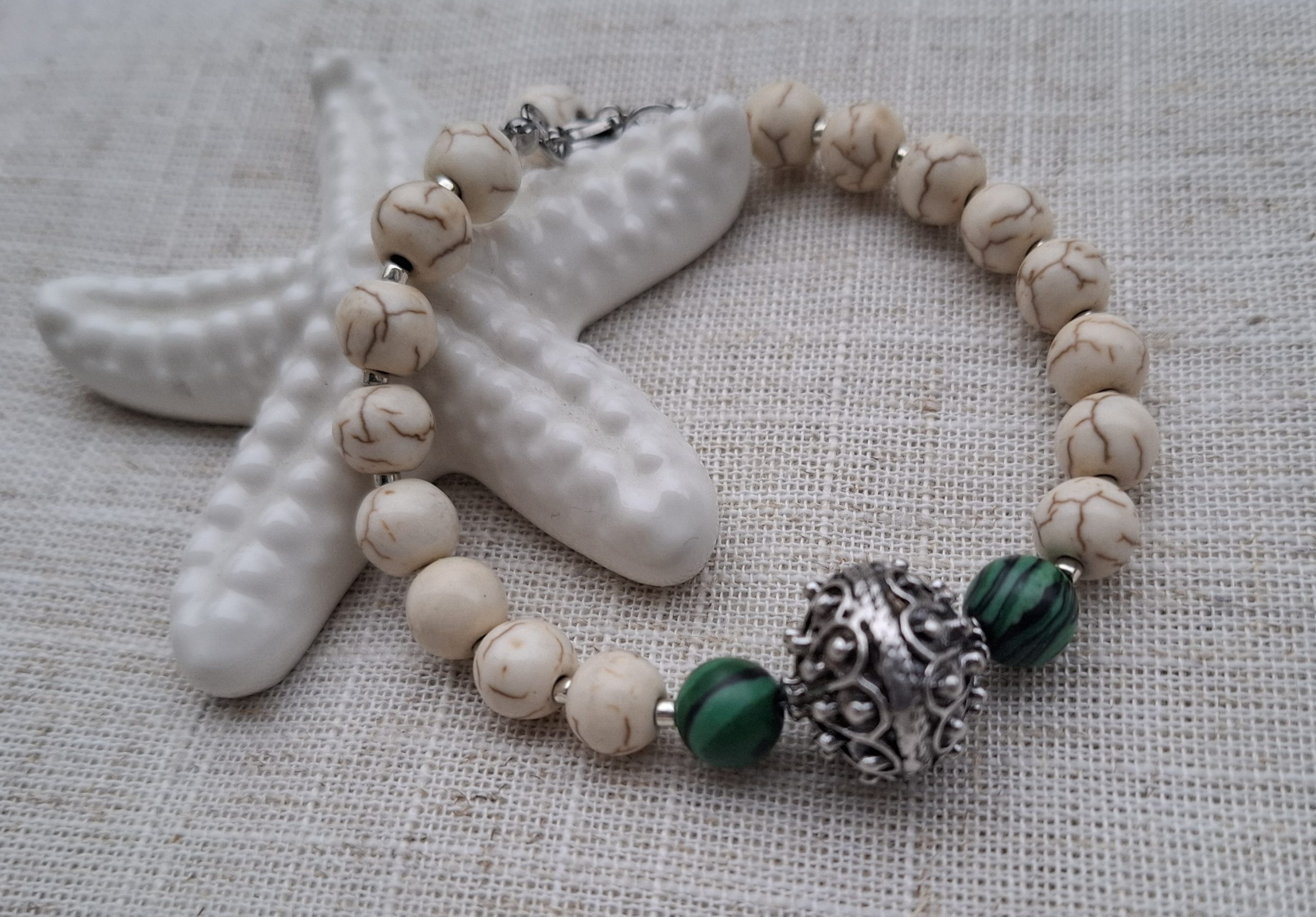 narukvica od houlita, malahita s botunom, dužina narukvice 19 cm