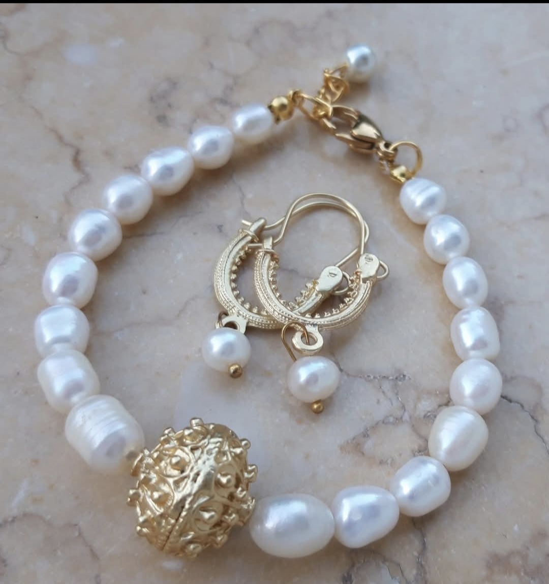 Biserna narukvica s botunom, zlatna i konavoske naušnice