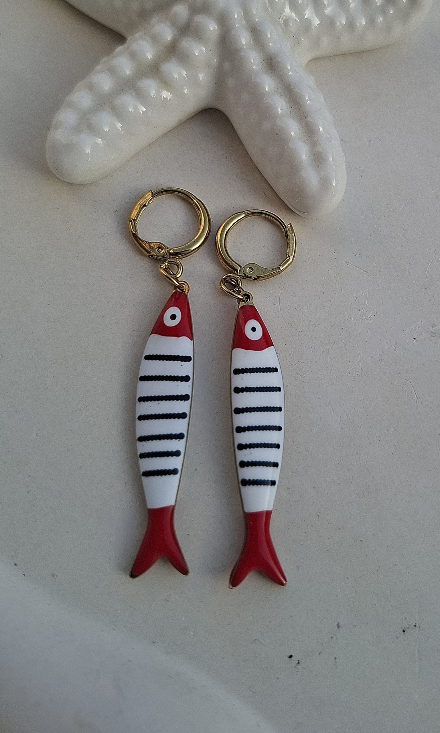 naušnice od čelika i emajla dužina 5,5 cm, ribice 4 x 1,5 cm