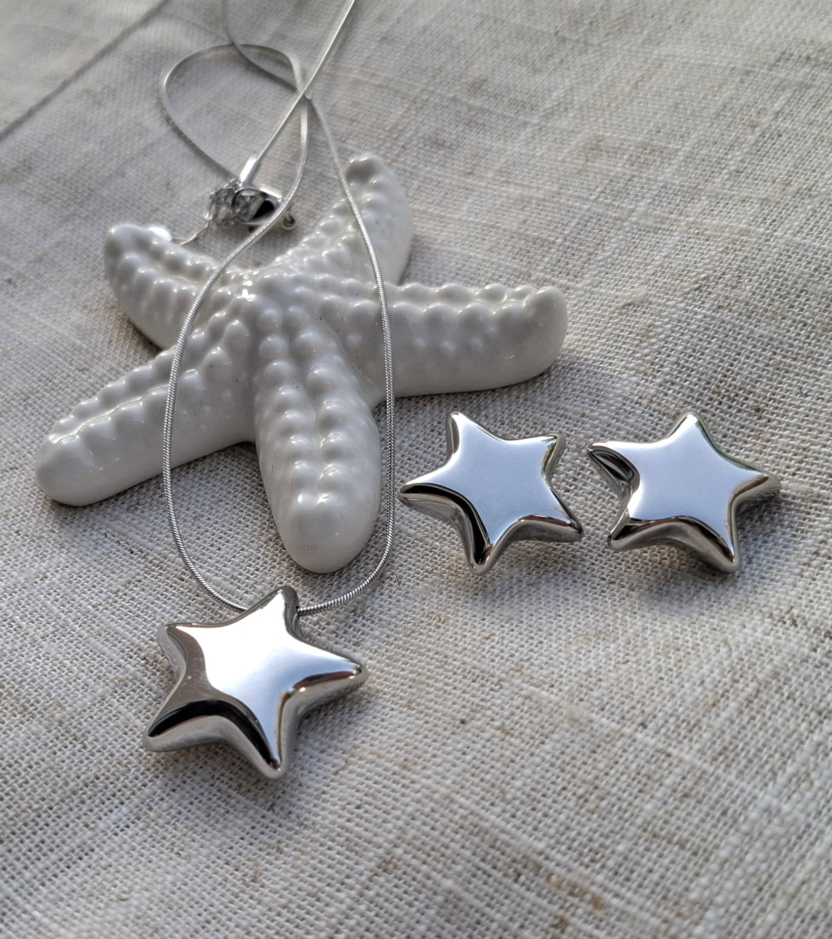 komplet od čelika, zvijezde 2 x 2 cm, lančić 40 cm + 5 cm