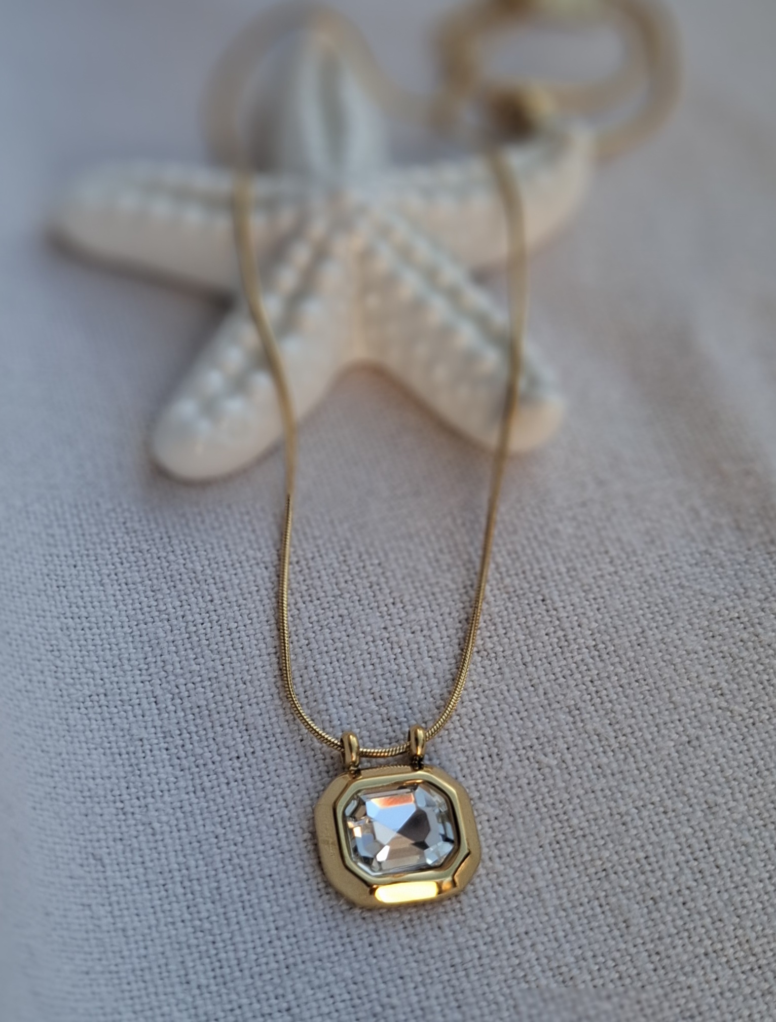 ogrlica od čelika i brušenog stakla, ne mijenja boju ni sjaj, ogrlica 40 + 5 cm, privjesak 1,5 x 1,5 cm