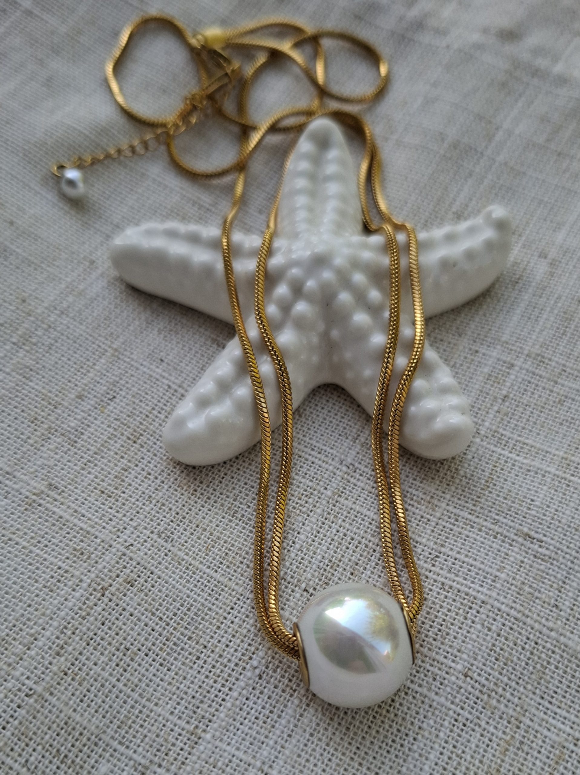 Ogrlica od čelika s perlom, ne gubi boju ni sjaj, dužina 40 + 5 cm, privjesak 1,5 + 1,5 cm