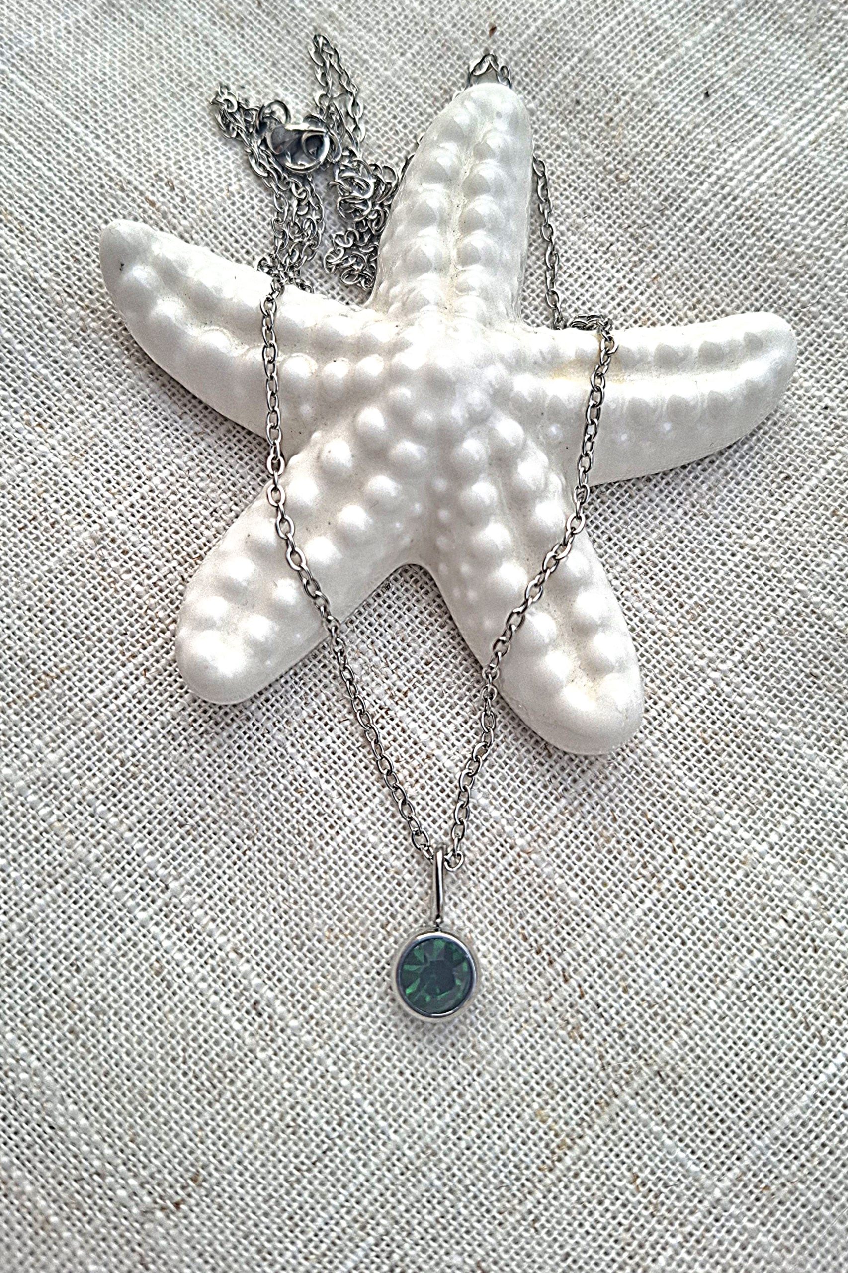 ogrlica od čelika s privjeskom od brušenog stakla zelene boje, dužina 45 + 5 cm, privjesak 0,5 x 0,5 cm