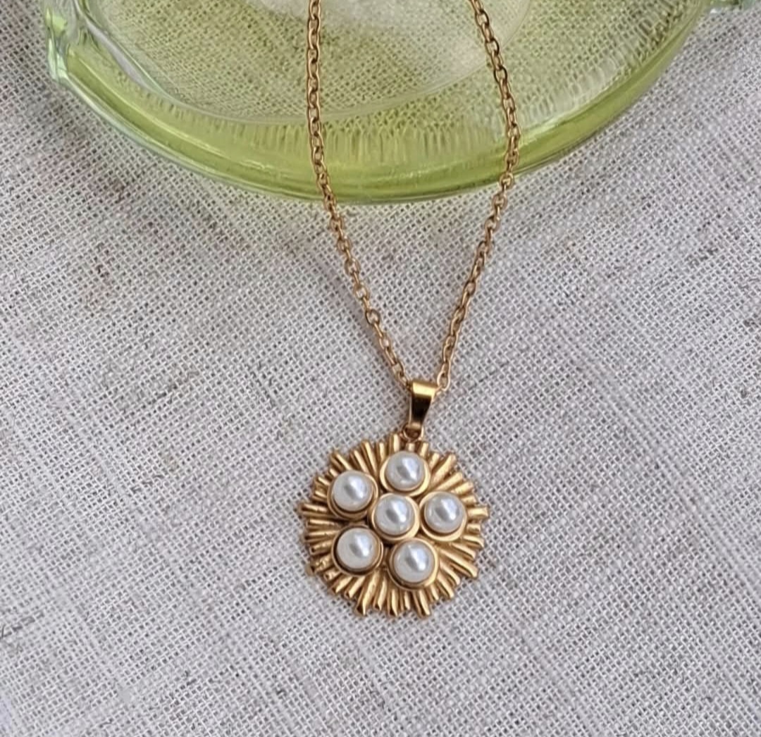 ogrlica izrađena od čelika i perli, ne mijenja boju ni sjaj, ogrlica 55 cm, privjesak 2,5 x 2,5 cm