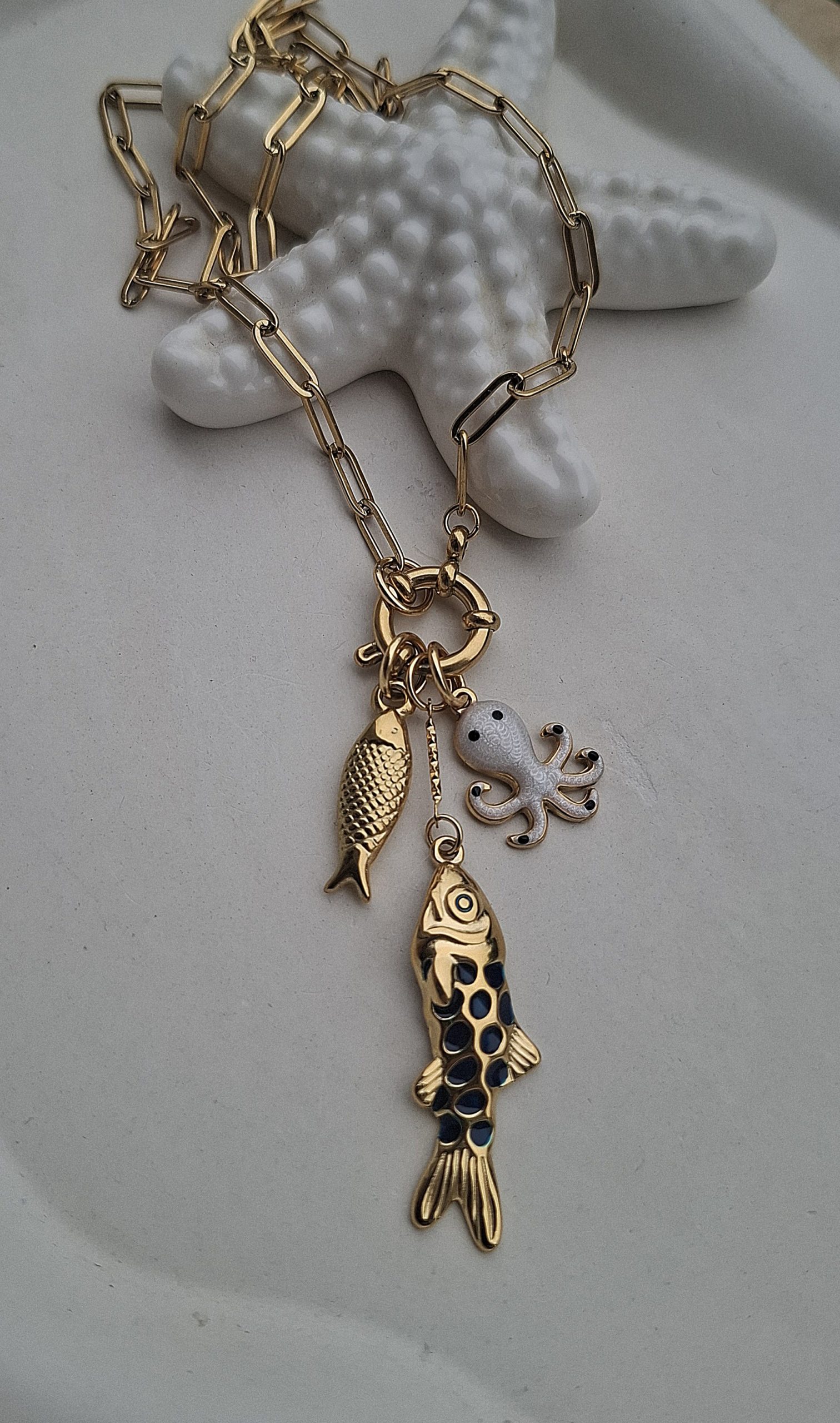 ogrlica s privjescima od čelika i emajla, dužina 43 cm