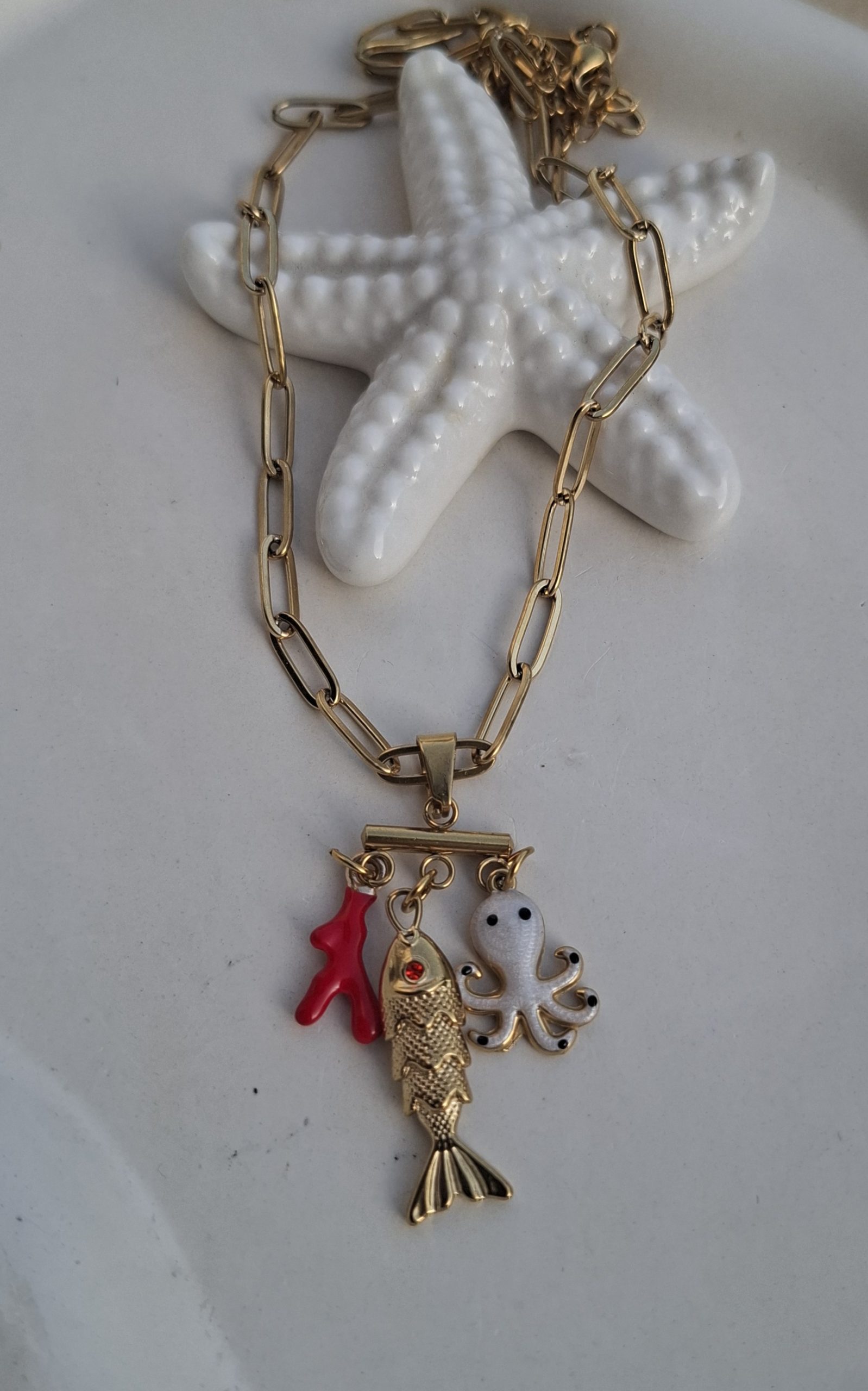 ogrlica s privjescima od čelika i emajla, dužina 45 + 5  cm