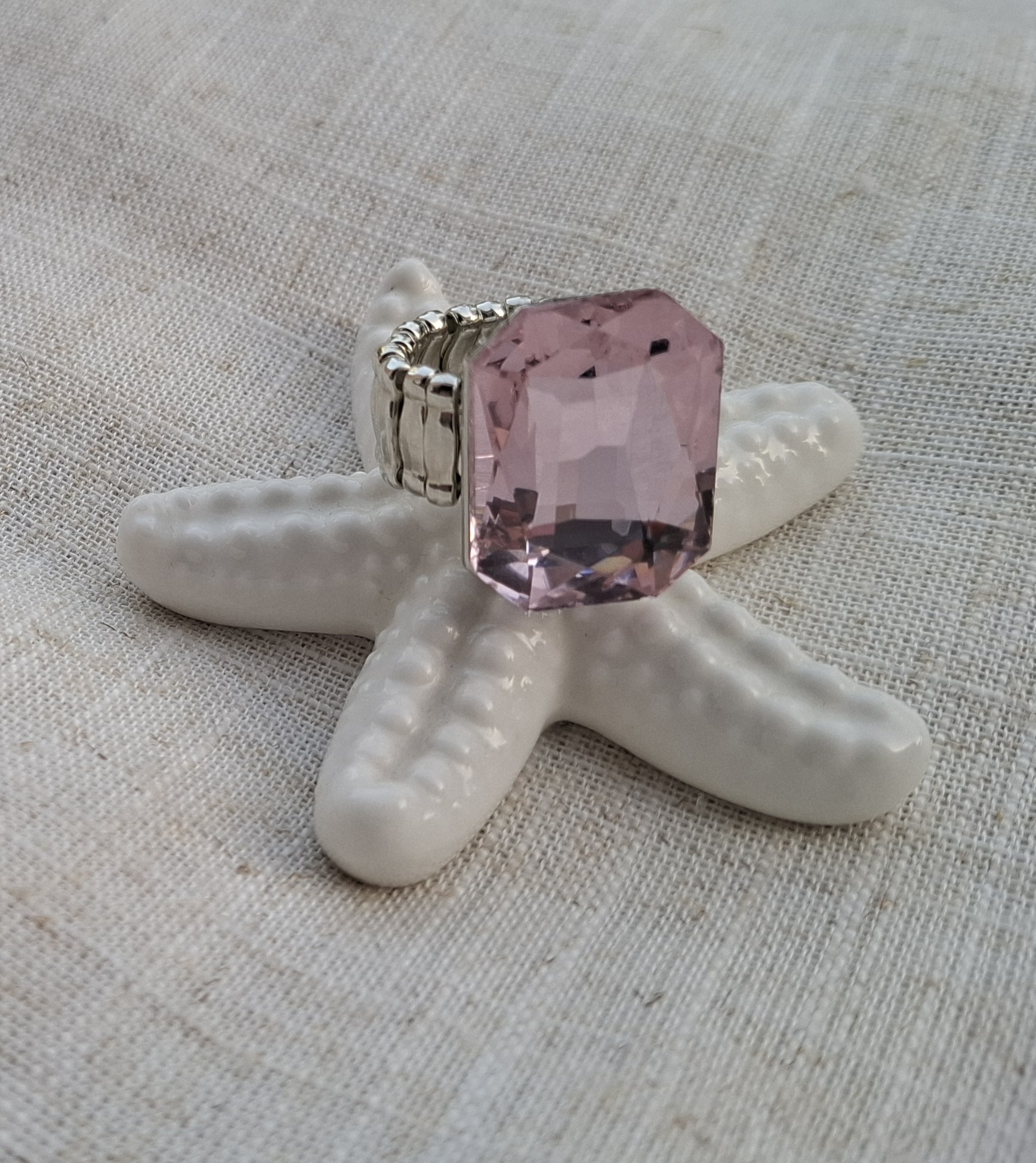 prsten na gumu, brušeno roza staklo 2,5 x 2 cm