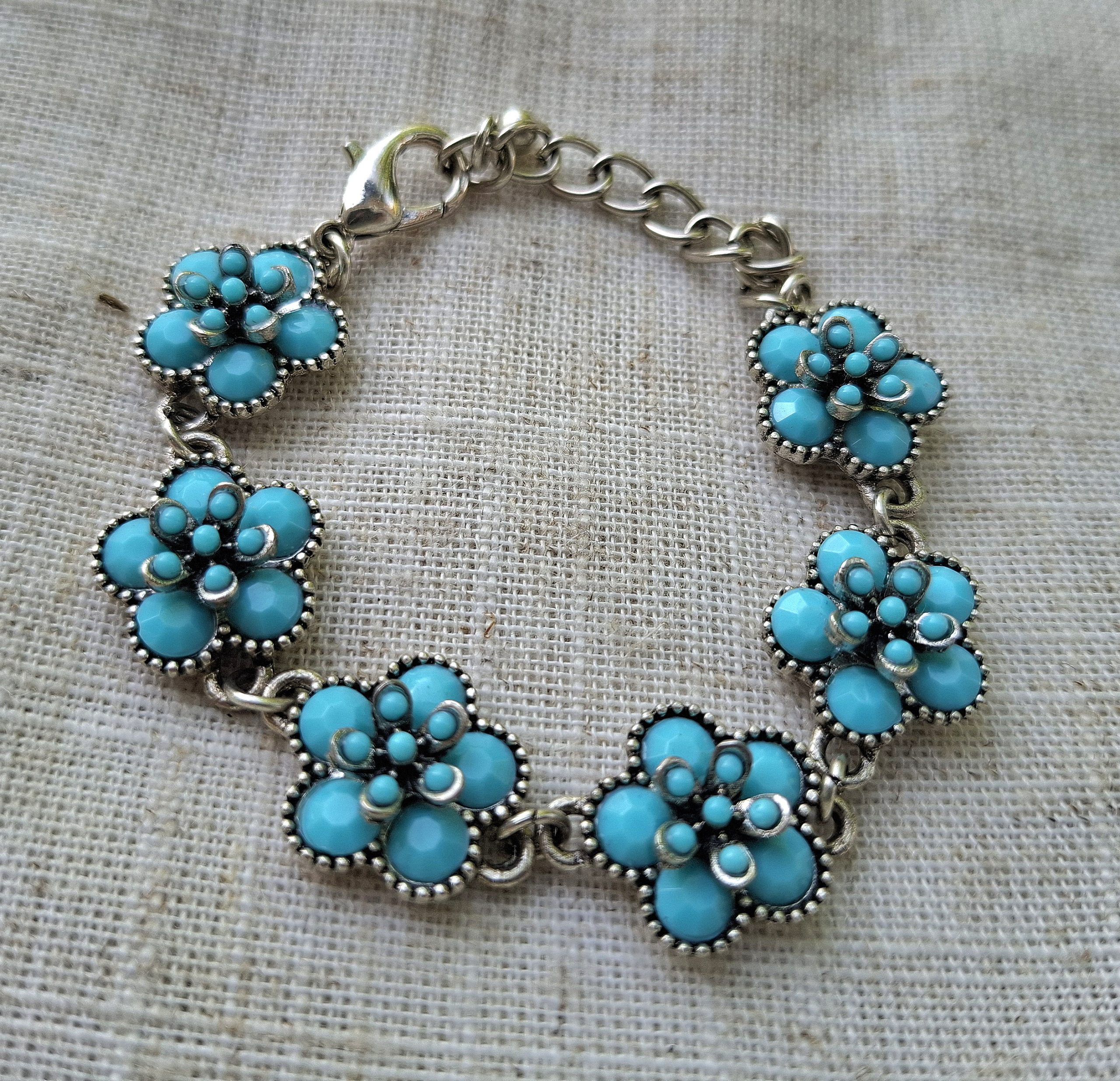 narukvica od legure cinka i staklenig perli tirkizne boje, dužina 20 cm