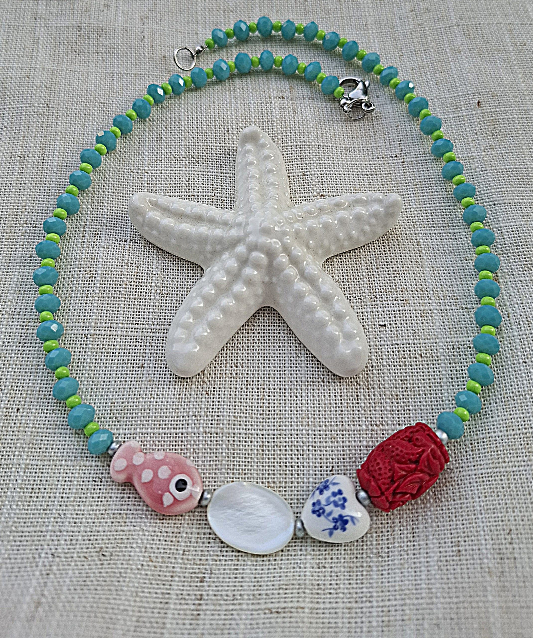 Tirkizna ogrlica i ružičasta ribica